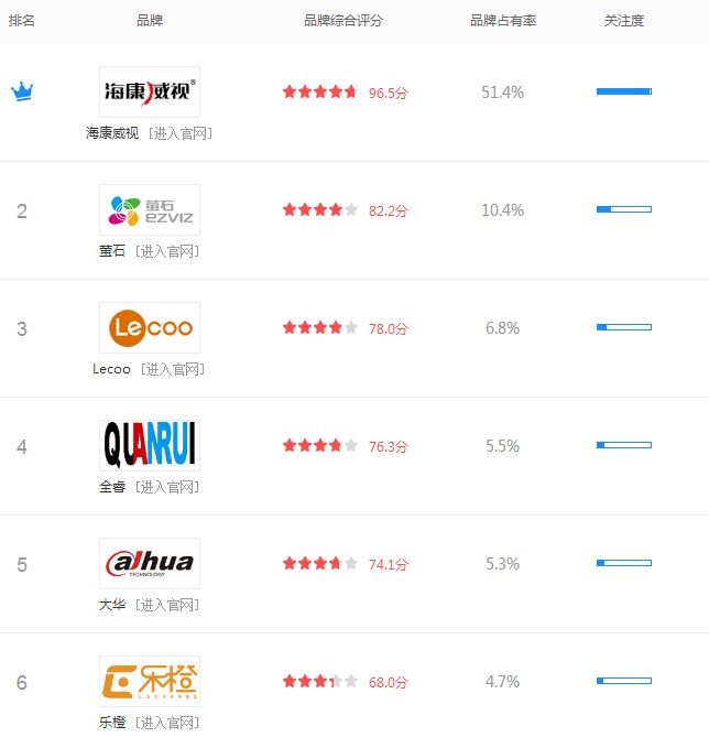 上图是搜索引擎搜索到的监控录像机品牌排行榜,目前萧山安防市场上最热门的监控录像机品牌是海康威视和大华出品的监控硬盘录像机都是杭州本地的公司也是目前国内安防行业做的比较好的两家企业有需要购买监控录像机的朋友可以参考购买这两个品牌的产品产品品质比较可靠,如果需要安装服务可以联系我们智壮安防为您上门提供服务。