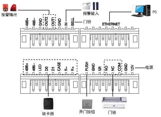 大华DH-ASI1201A-D门禁一体主机接线图解