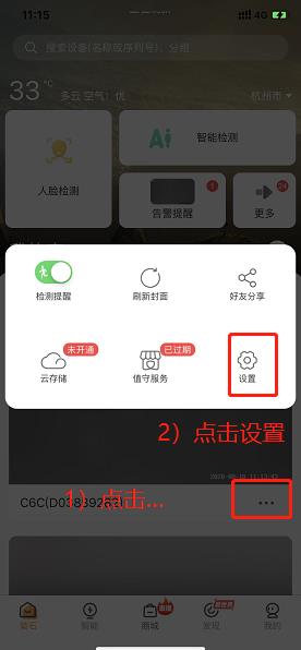 第一步:打开萤石云,点击倒立的画面点设置...