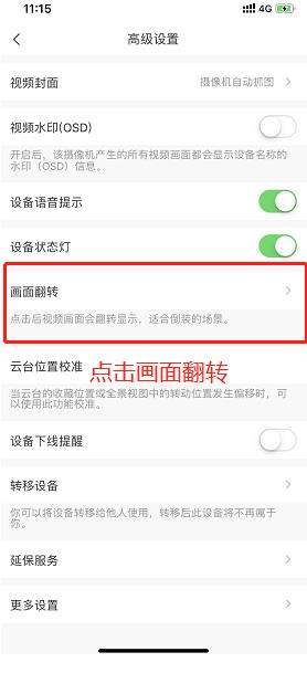 第三步:在高级设置界面点击画面翻转,大功告成。