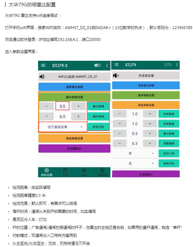 上图详细说明了关于大华车牌识别系统道闸79G防砸雷达配置教程的各项参数配置方法,有需要的网友可以参考一下进行配置希望对大家有所帮助。
