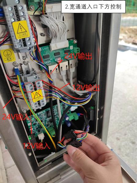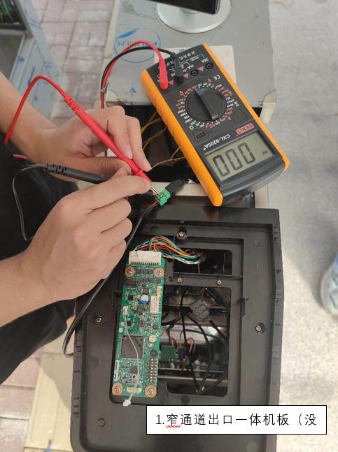 1.万用表测量发现一体机板的12V输出电源没电,且一体机板电源灯也没亮。 2.检查对侧(宽通道入口)下方的电源端子排,万用表测量发现3,4端子输入输出都为0,正常应该为12V。 3.检查窄通道入口处下方电源端子排,万用表万用表测量发现3,4端子输入输出也都为0,正常应该为12V。 4检查窄通道入口处下方电源端子排34电源输入端发现电源电源没有接好。拔插后用绝缘胶布绑紧后电源恢复正常,闸机头没电问题解决。