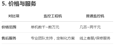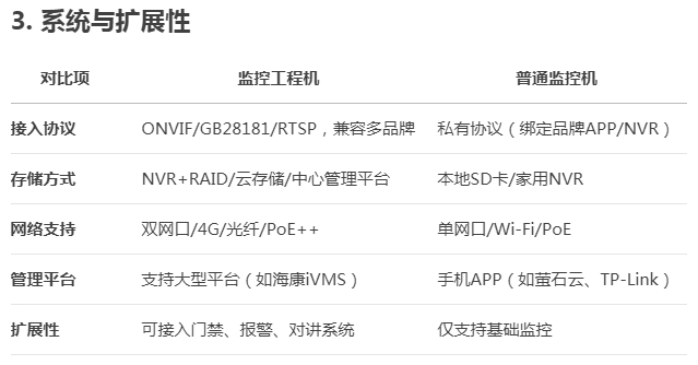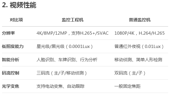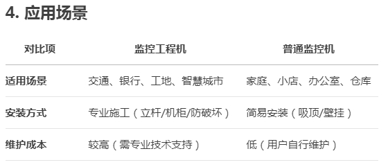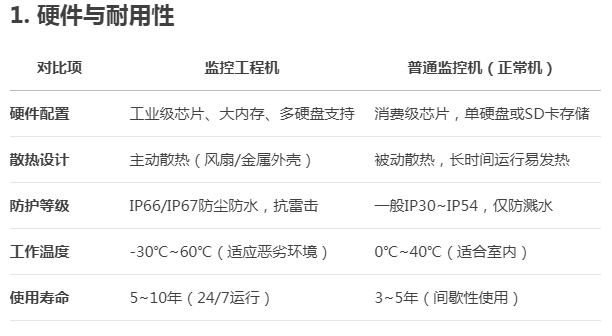 监控系统中的工程机和正常机(普通监控设备)在功能、性能、适用场景等方面有显著区别,主要体现在以下几个方面: